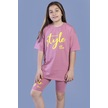 Kız Çocuk %100 Pamuklu Brooklyn Baskılı Şortlu Takım - Pembe 3-4 Yaş 8-9 Yaş Pembe
