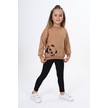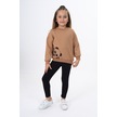 Toontoy Kız Çocuk Baskılı Taytlı Takım Kahverengi