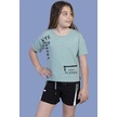 Toontoy Kız Çocuk Cep Detaylı Baskılı Şortlu Takım Yeşil