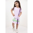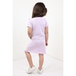 Toontoy Kız Çocuk Cepli Şeritli Tavşan Baskılı Elbise Açık Lila