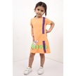 Toontoy Kız Çocuk Cepli Şeritli Tavşan Baskılı Elbise Turuncu