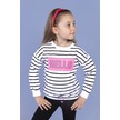 Toontoy Kız Çocuk Çizgi Desenli Baskılı Sweatshirt Beyaz