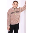 Toontoy Kız Çocuk Fermuar Detaylı Nakışlı Kadife Sweatshirt Kahverengi