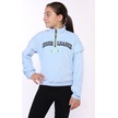 Toontoy Kız Çocuk Fermuar Detaylı Nakışlı Kadife Sweatshirt Mavi