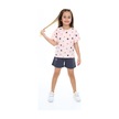 Toontoy Kız Çocuk Garni Komple Çiçek Baskılı Şortlu Takım Pudra