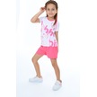 Toontoy Kız Çocuk Garnili Tavşan Baskılı Şortlu Takım Fuşya