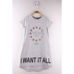 Toontoy Kız Çocuk I Want It All Baskılı Elbise Gri Melanj