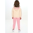 Toontoy Kız Çocuk Kapüşonlu Kanguru Cepli Nakışlı Eşofman Takım Pembe