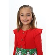 Toontoy Kız Çocuk Kol Fırfır Detaylı Düğmeli Kardan Adam Baskılı Elbise Kırmızı