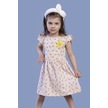 Toontoy Kız Çocuk Komple Ananas Baskılı Çiçek Aksesuarlı Elbise Pudra