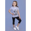 Toontoy Kız Çocuk Parlak Baskılı Kapüşonlu Kaprili Takım Gri Melanj