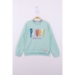 Toontoy Kız Çocuk Power Renkli Baskılı Sweatshirt Su Yeşil