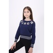 Toontoy Kız Çocuk Sweatshirt Black Varak Baskılı Lacivert