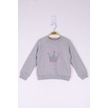 Toontoy Kız Çocuk Taç Baskılı Sweatshirt Gri Melanj