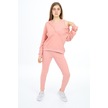 Monox Kız Çocuk Çiçek Baskılı İpli Şeritli Pantolon Fitilli Polar Takım Taş