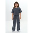 Toontoy Kız Çocuk Yıkamalı Crop Eşofman Takım Füme Melanj
