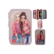 Top Model 3 Katlı Kalem Kutusu - Çiçek Desenli Çok Renkli