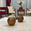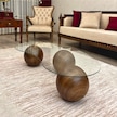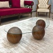 Top Sehpa & Küre Cam Orta Sehpa Kaplama Ahşap Desen Sehpa