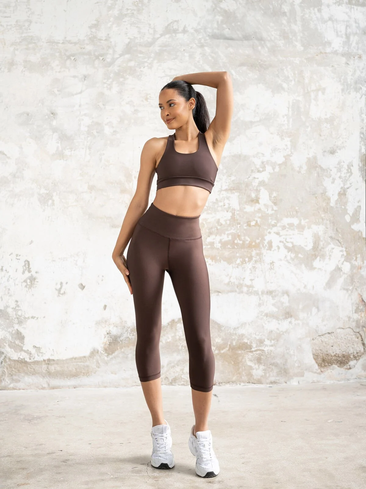 Toparlayıcı Spor Kapri Tayt Kahverengi