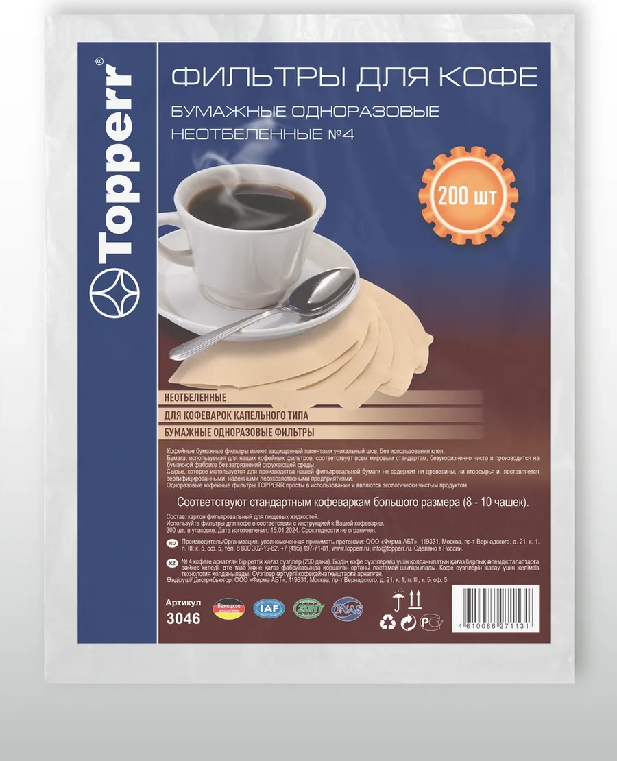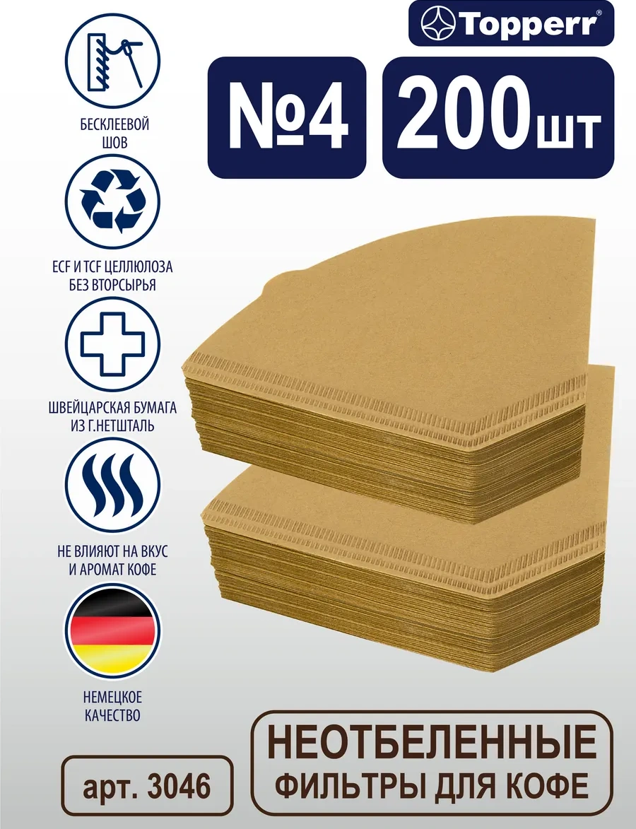 Topperr Beyazlatılmamış Demleme Kahvesi Filtreleri No4 200 Adet 34839223 Diğer