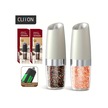Topshop1 2 Adet Beyaz Plastik Gövdeli Yerçekimli Elektrikli Tuz Karabiber Değirmeni Otomatik Öğütme Ayarlanabilir Öğütme Kalitesi Led Işıklı Ahşap