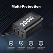 Topshop1 Siyah Yms-618 200w Gan Iıı 6 Portlu Usb C Şarj Aleti Qc3 1 Pd 100w Dizüstü Şarj Adaptörü Macbook İphone Uyumlu Galaxy Uyumlu S24 S23 S22 İçin