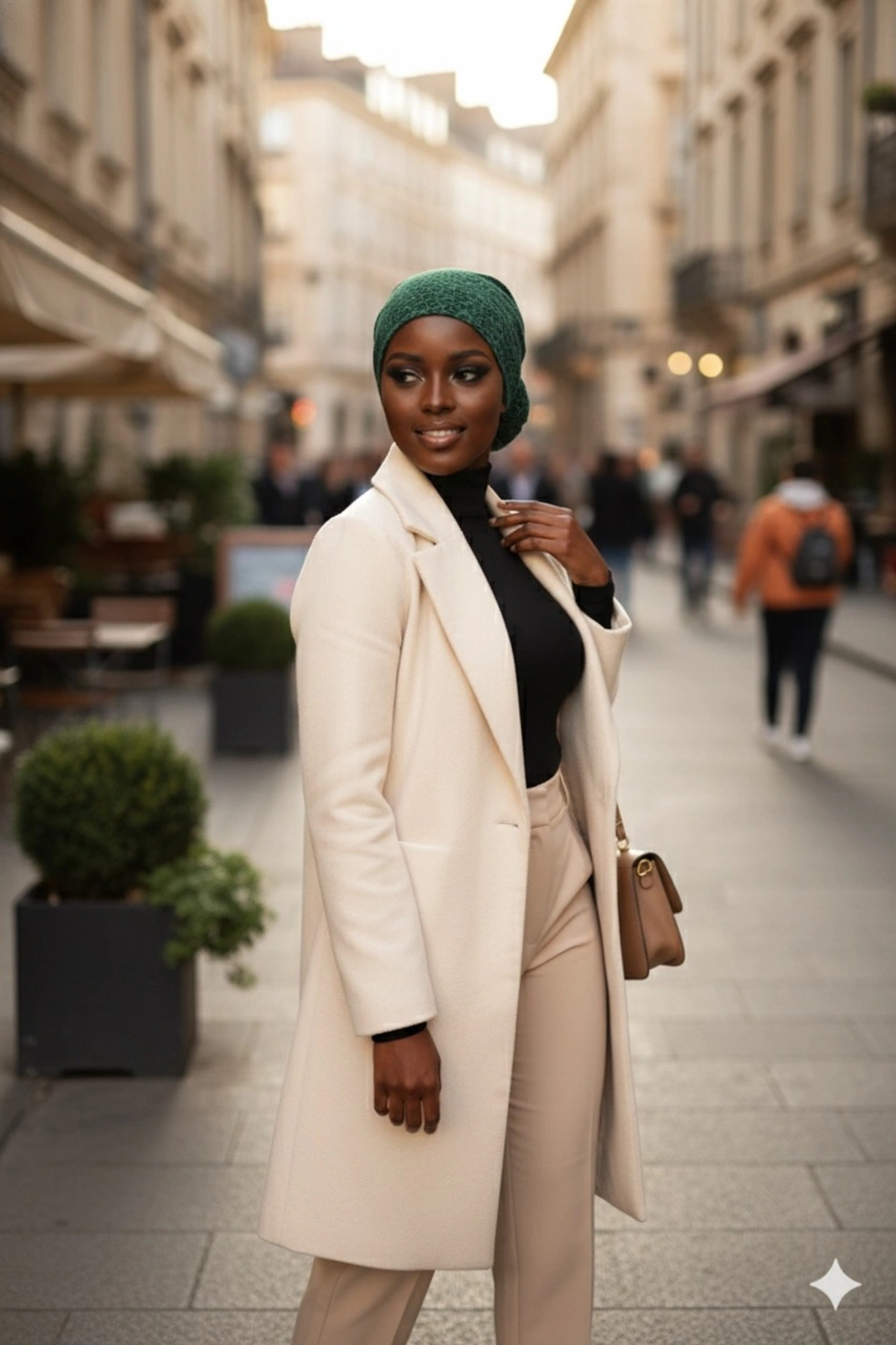 Kadife Şapka Toka Detaylı Bej Hazır Türban Tesettür Bone Bej