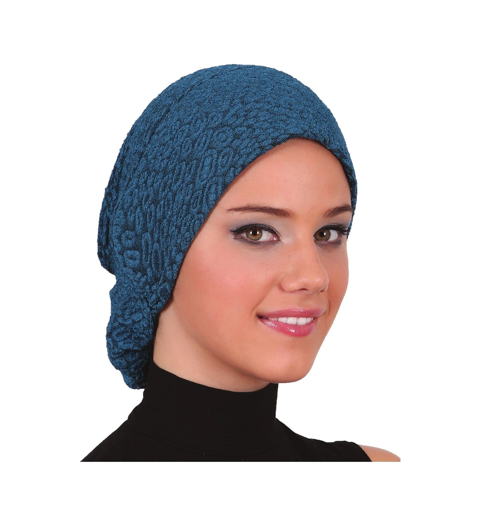 Lüks Nervürlü Arkası Şifon Aksesuarı Petrol Hazır Türban Tesettür Bone Petrol