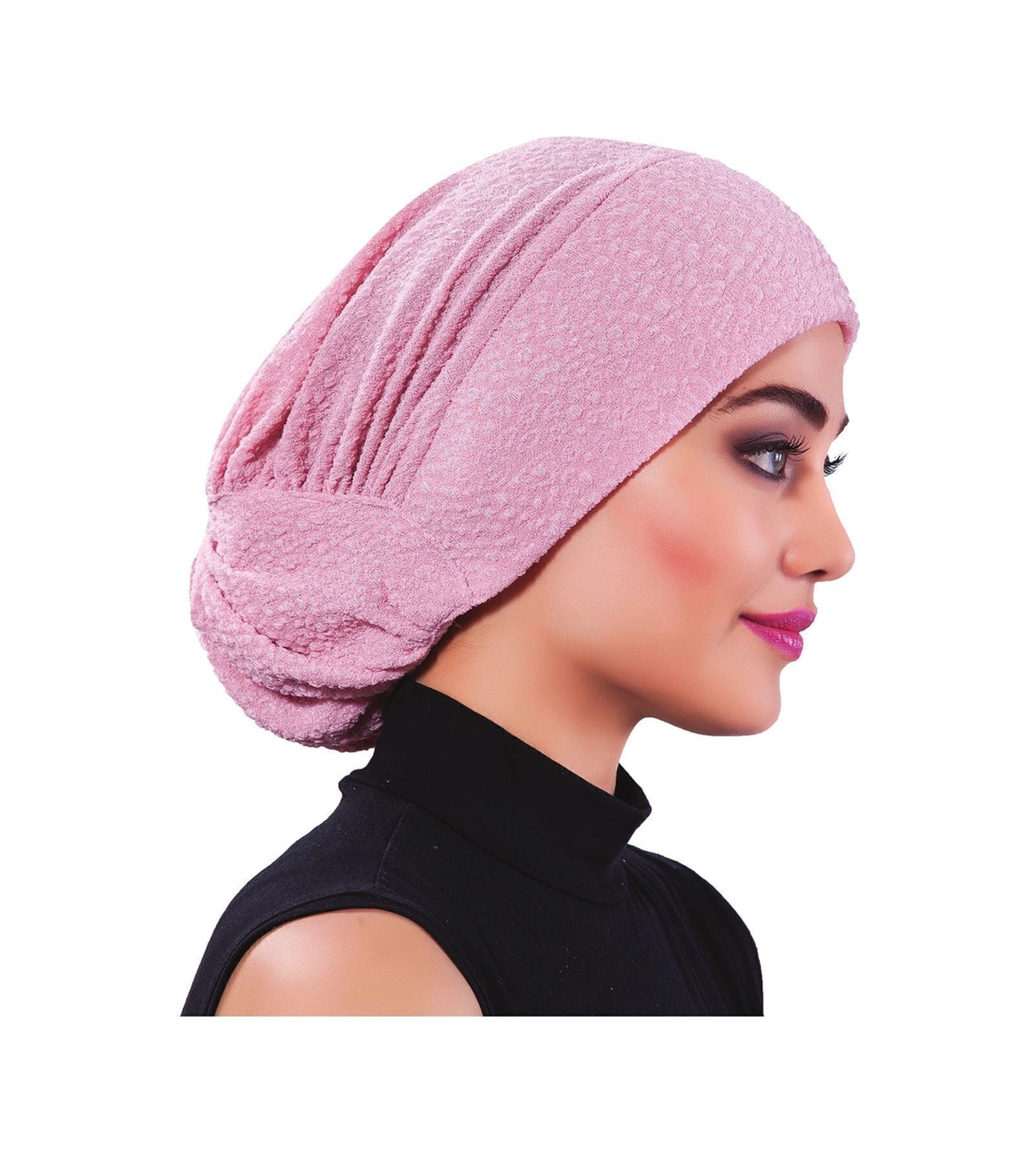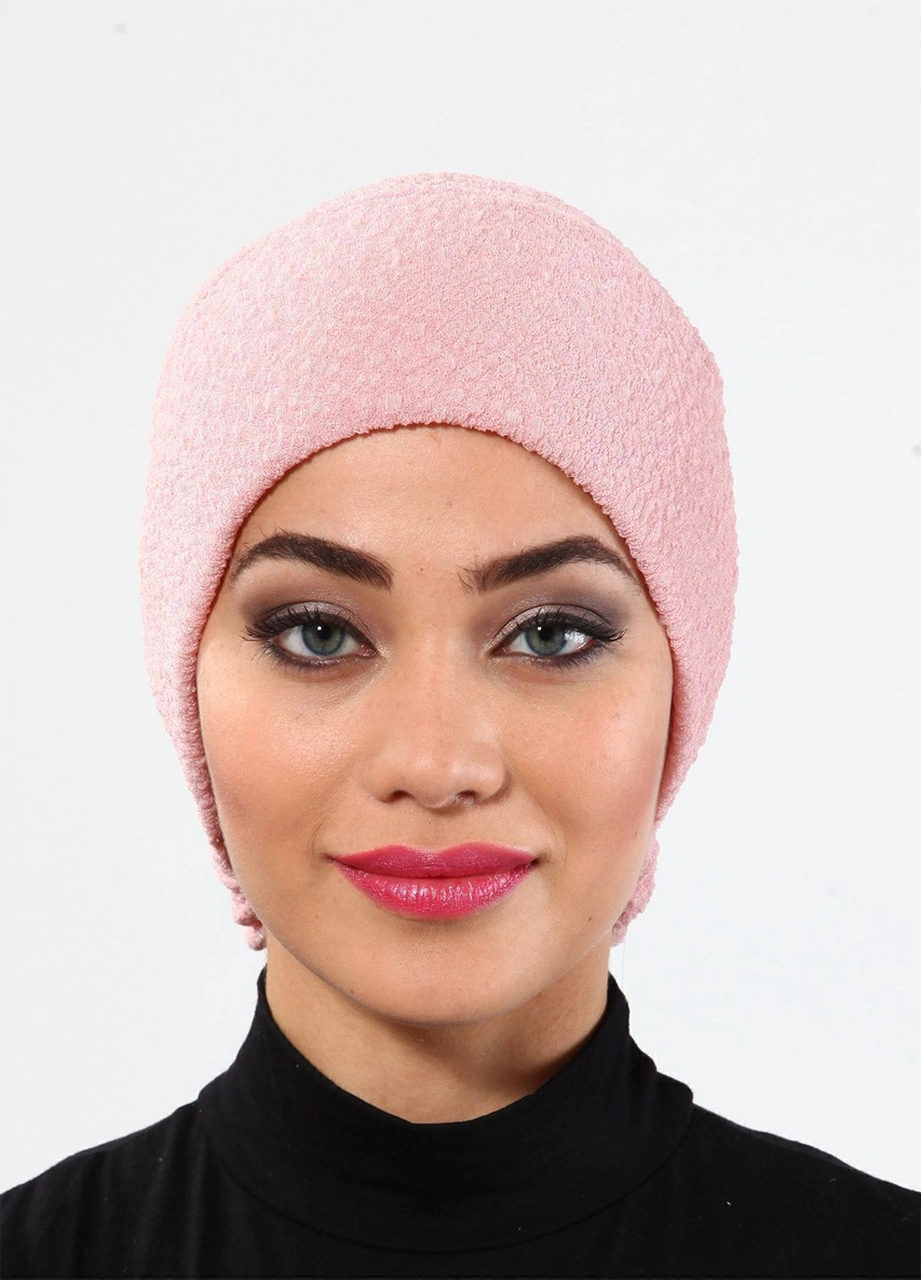 Topuzlu Brokar Pudra Hazır Türban Tesettür Bone Pudra