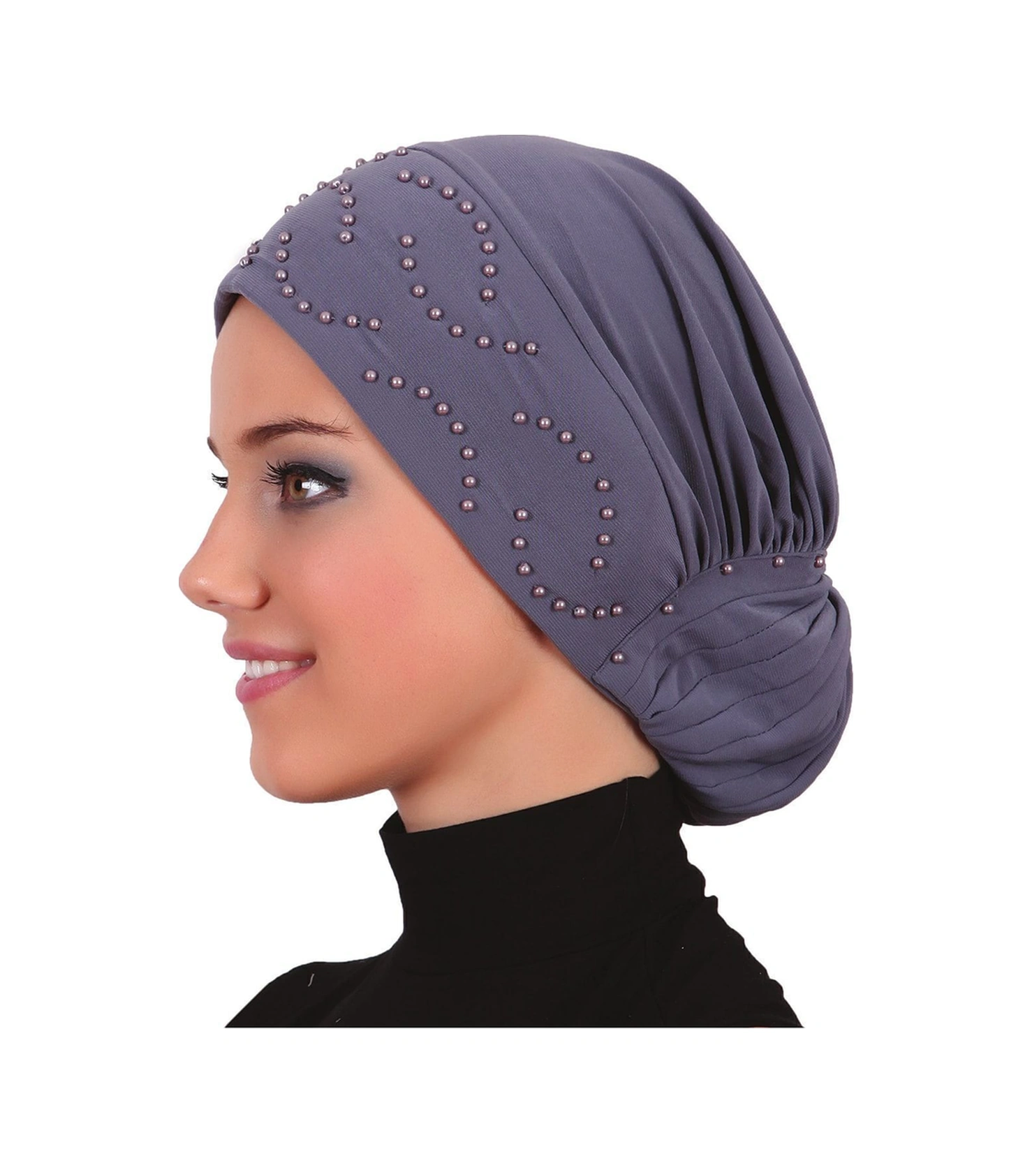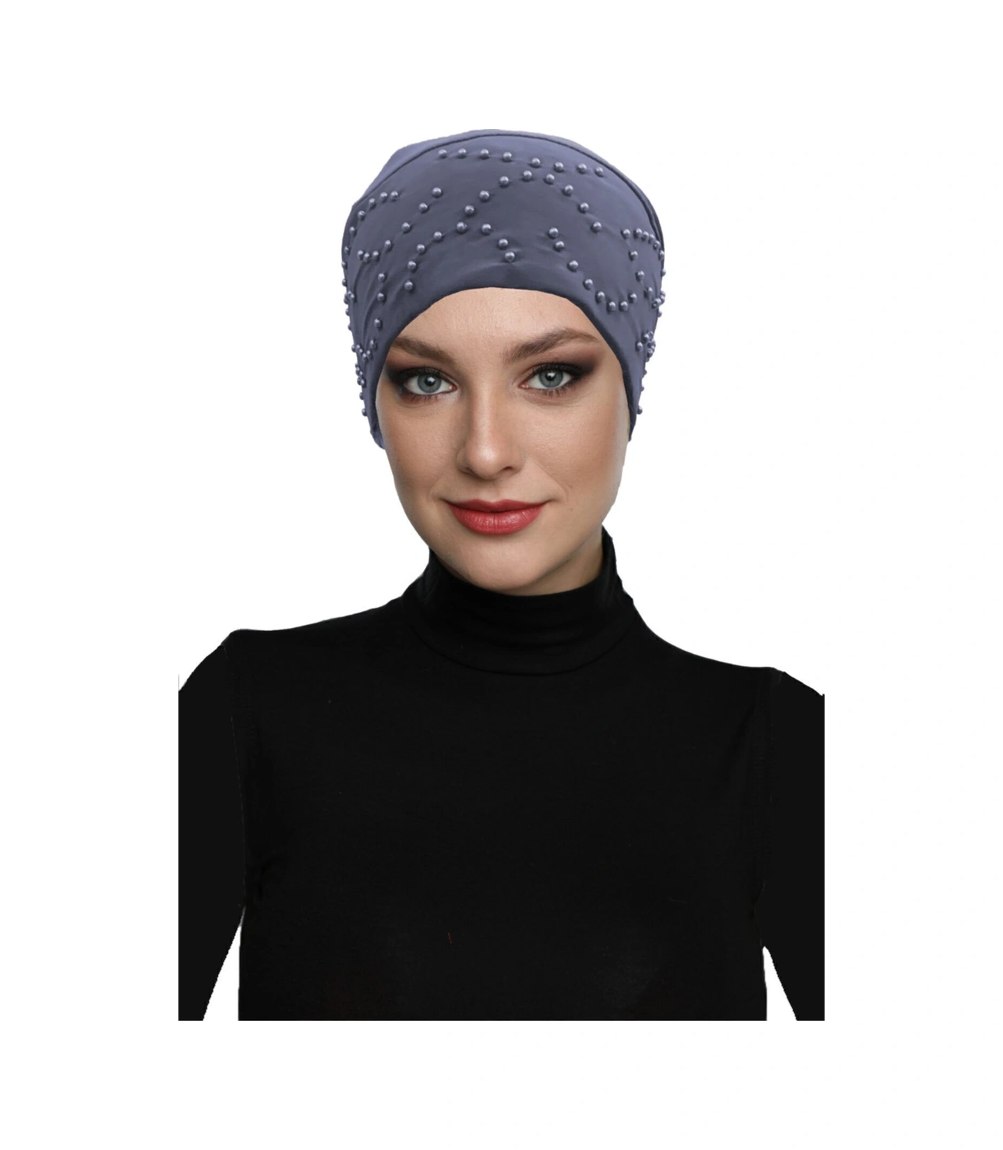 Topuzlu Koyu Gri Hazır Türban Tesettür Bone Koyu Gri
