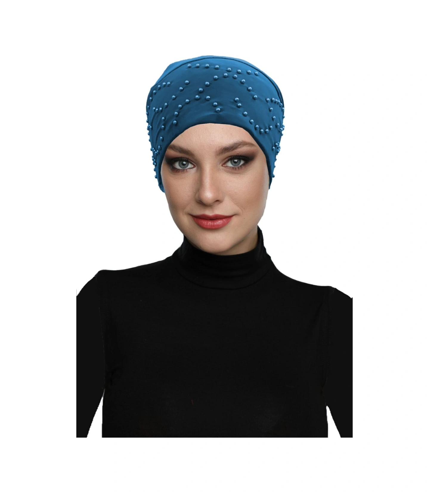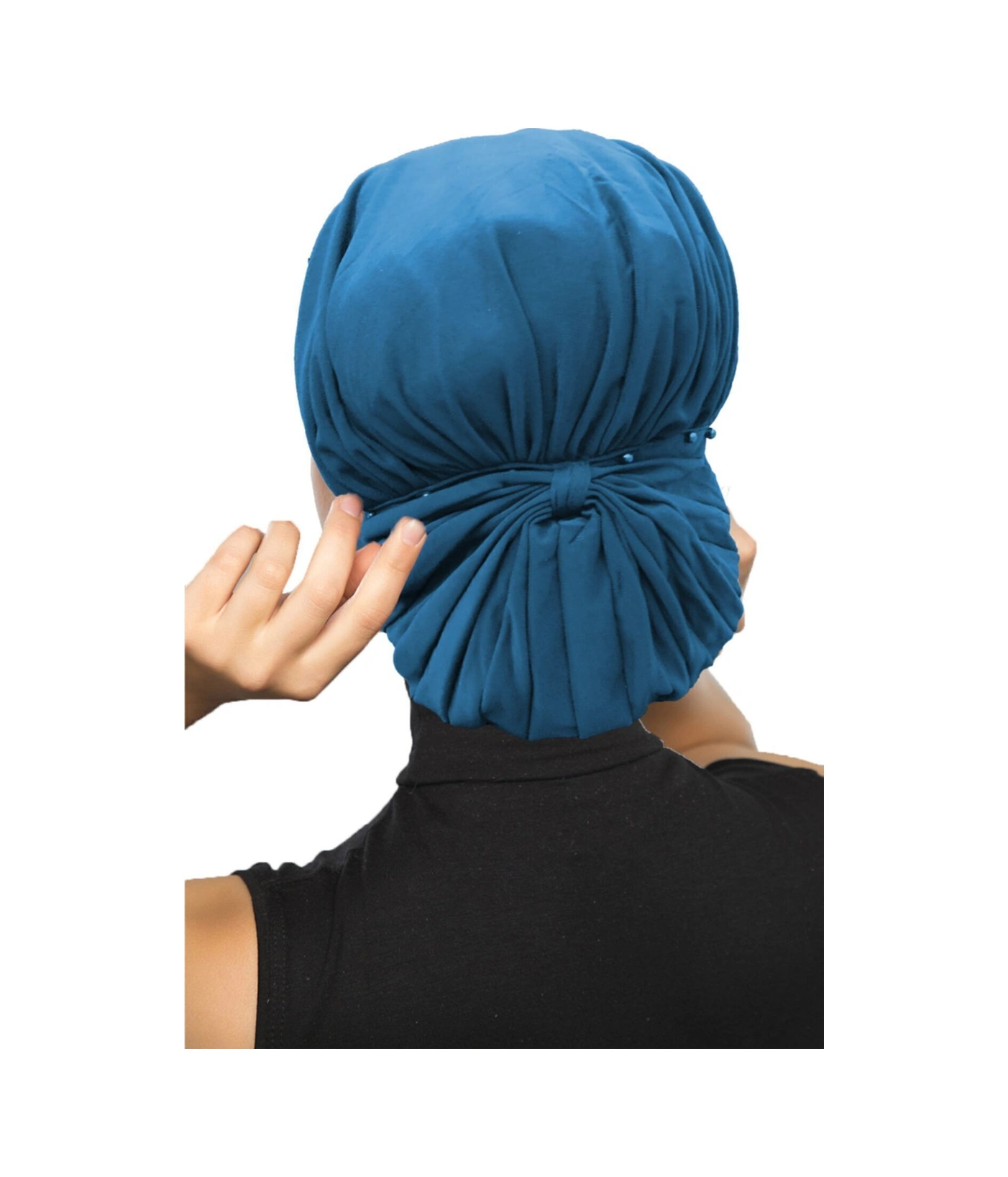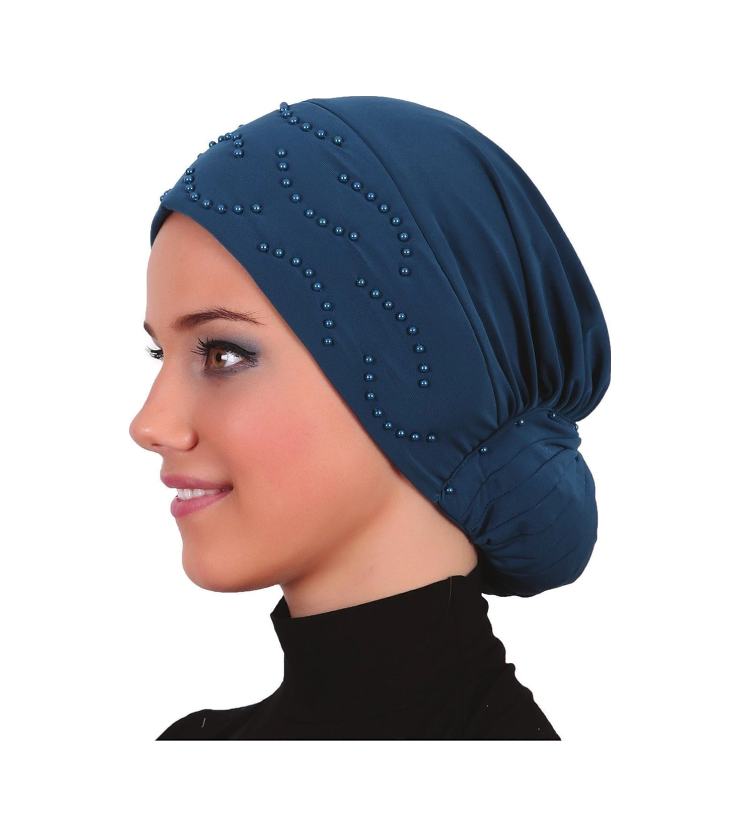 Topuzlu Petrol Hazır Türban Tesettür Bone Petrol