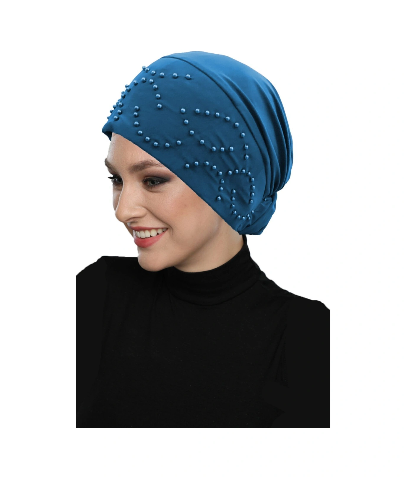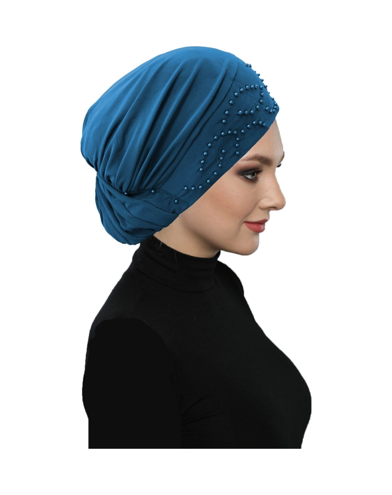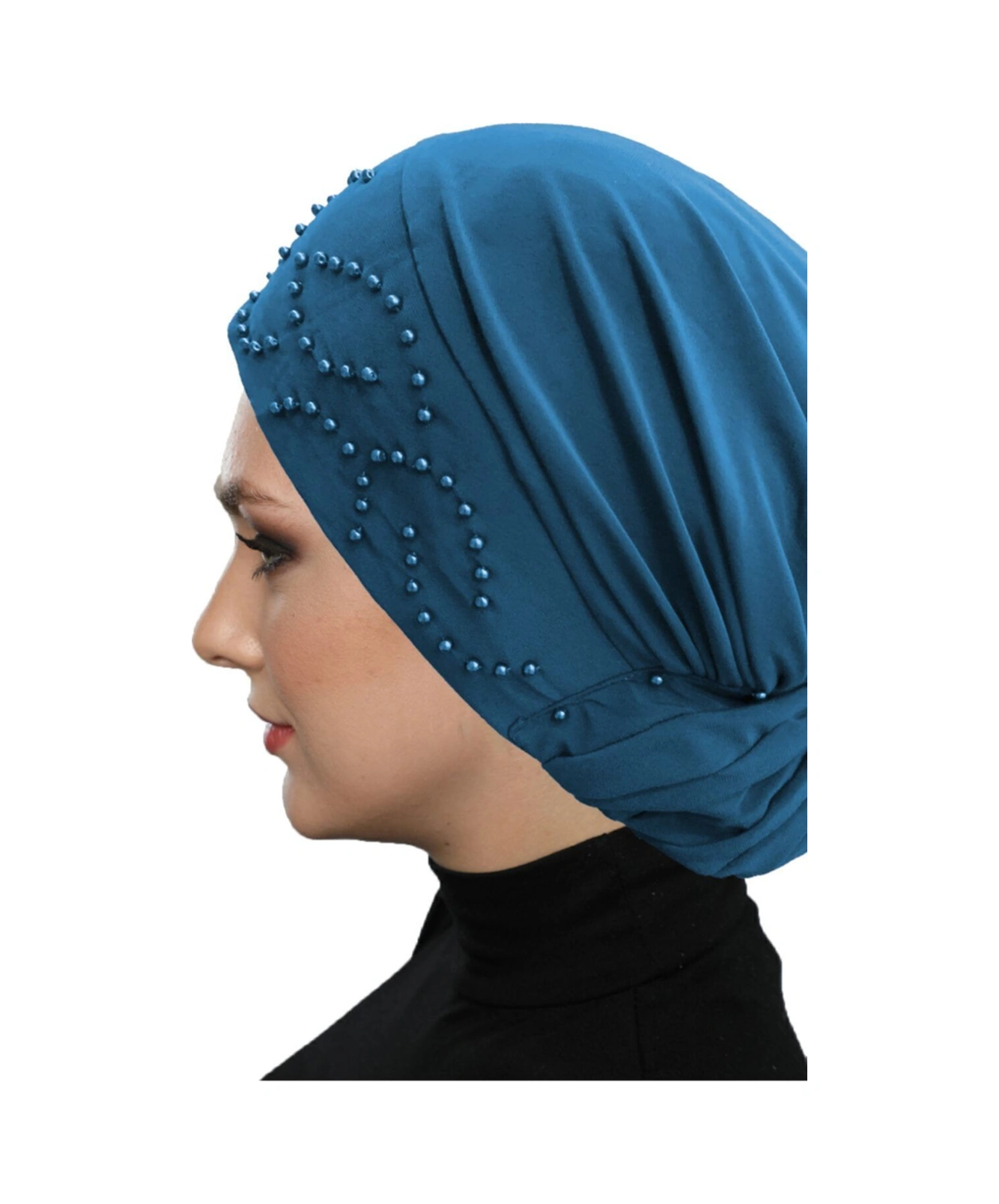 Topuzlu Petrol Hazır Türban Tesettür Bone Petrol