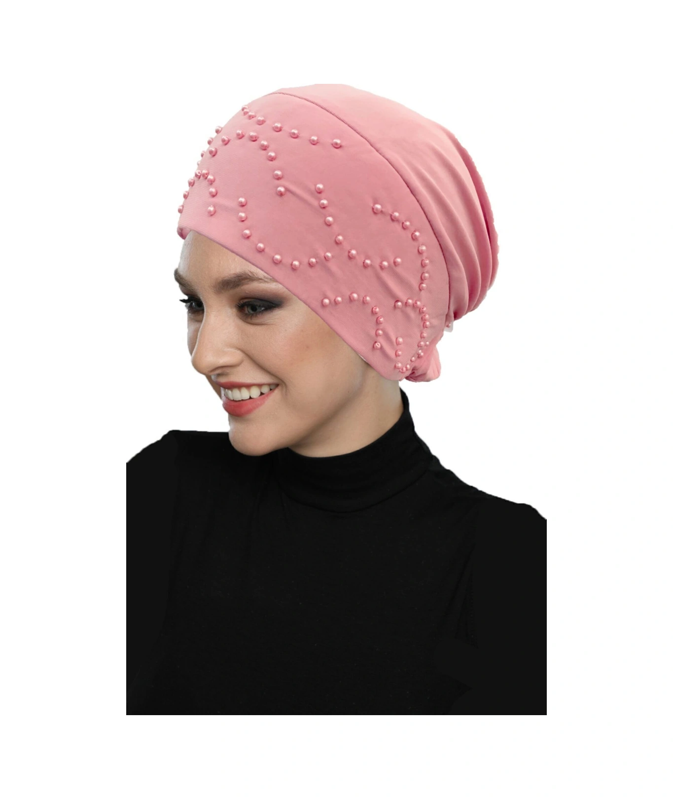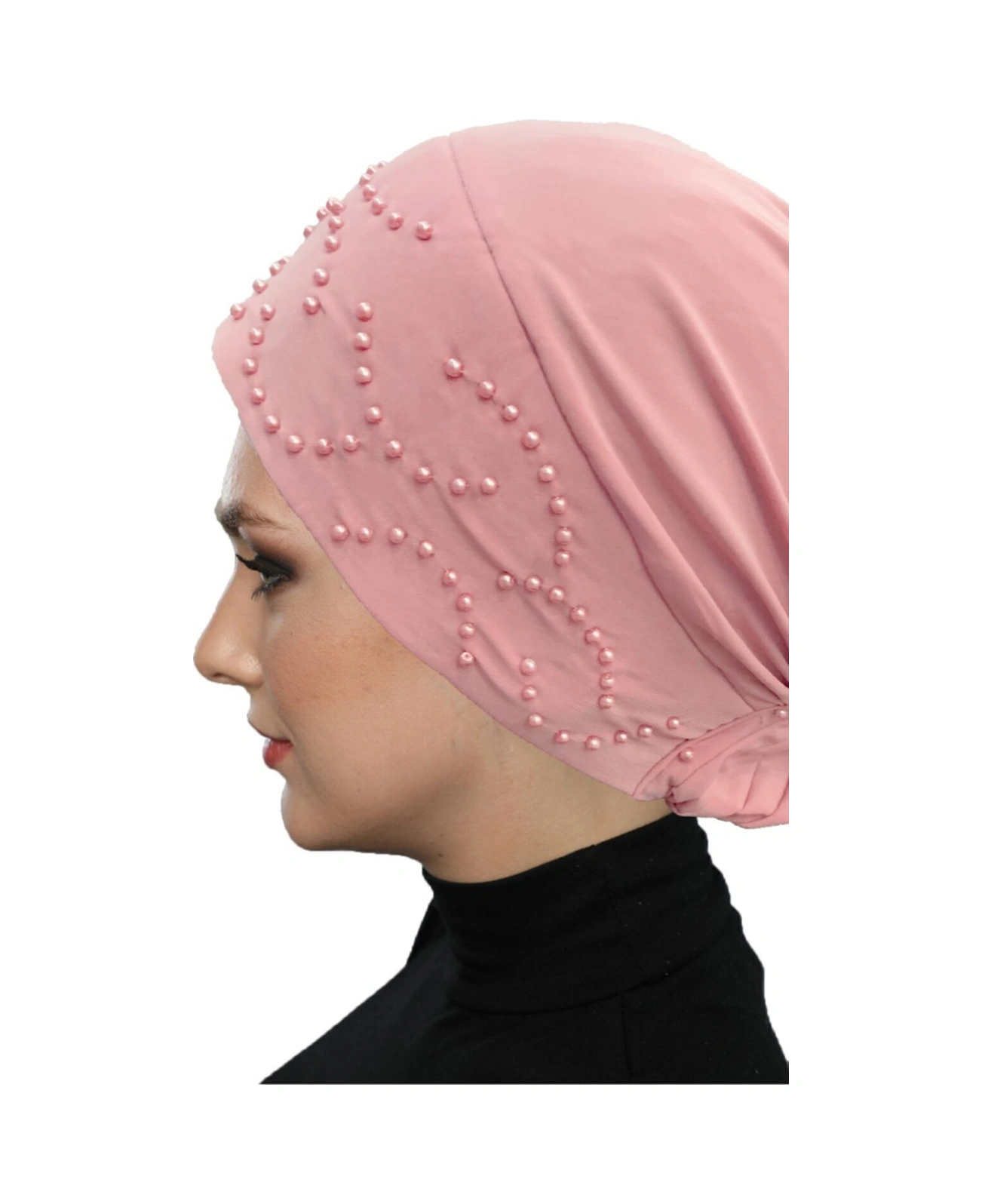 Topuzlu Pudra Hazır Türban Tesettür Bone Pudra