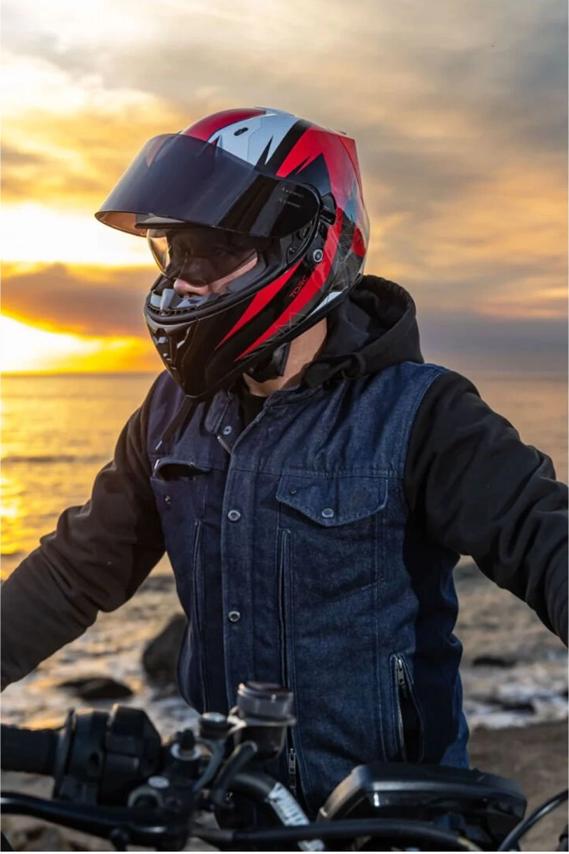 Torc T-15 Shock Kapalı Motosiklet Kaskı Siyah - Kırmızı - Beyaz