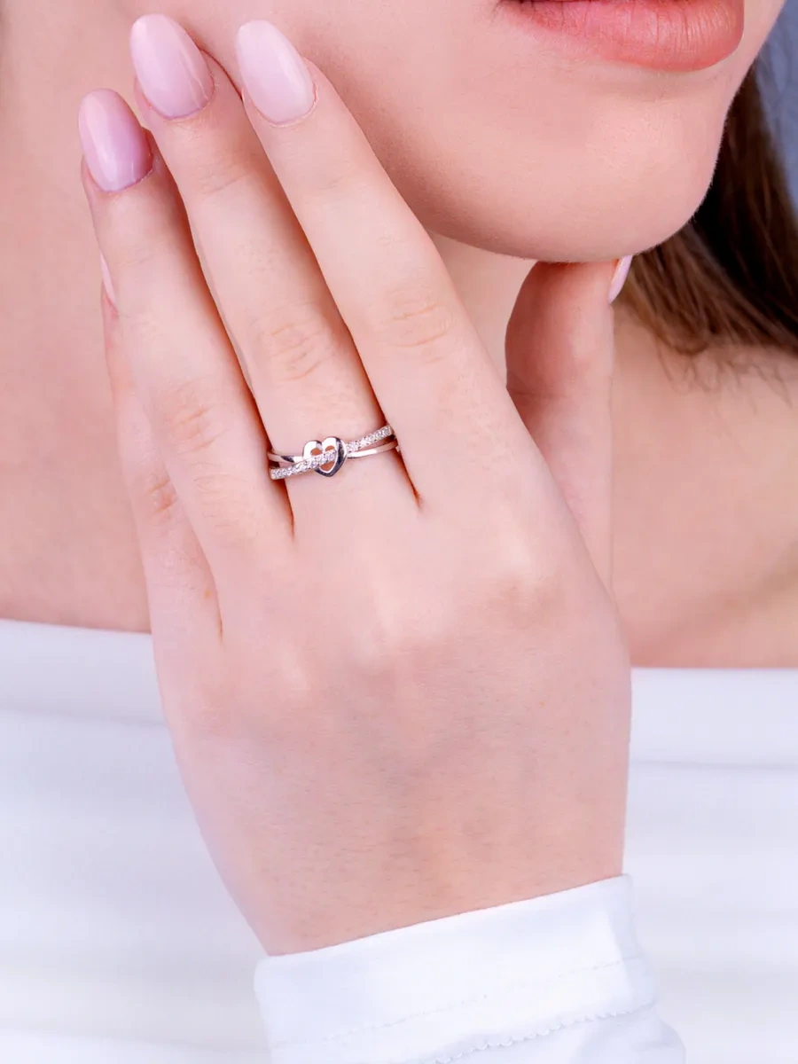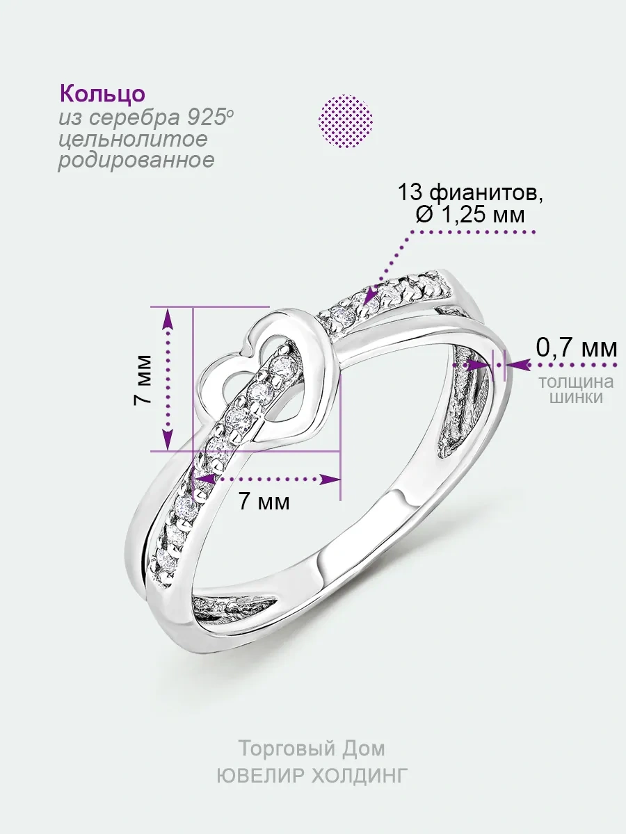 Torgovyj Dom Uvelir Holding Küpeye Kaydırma Çukurotundan Oluşan Gümüş Kalp Yüzük 412177814 Gümüş