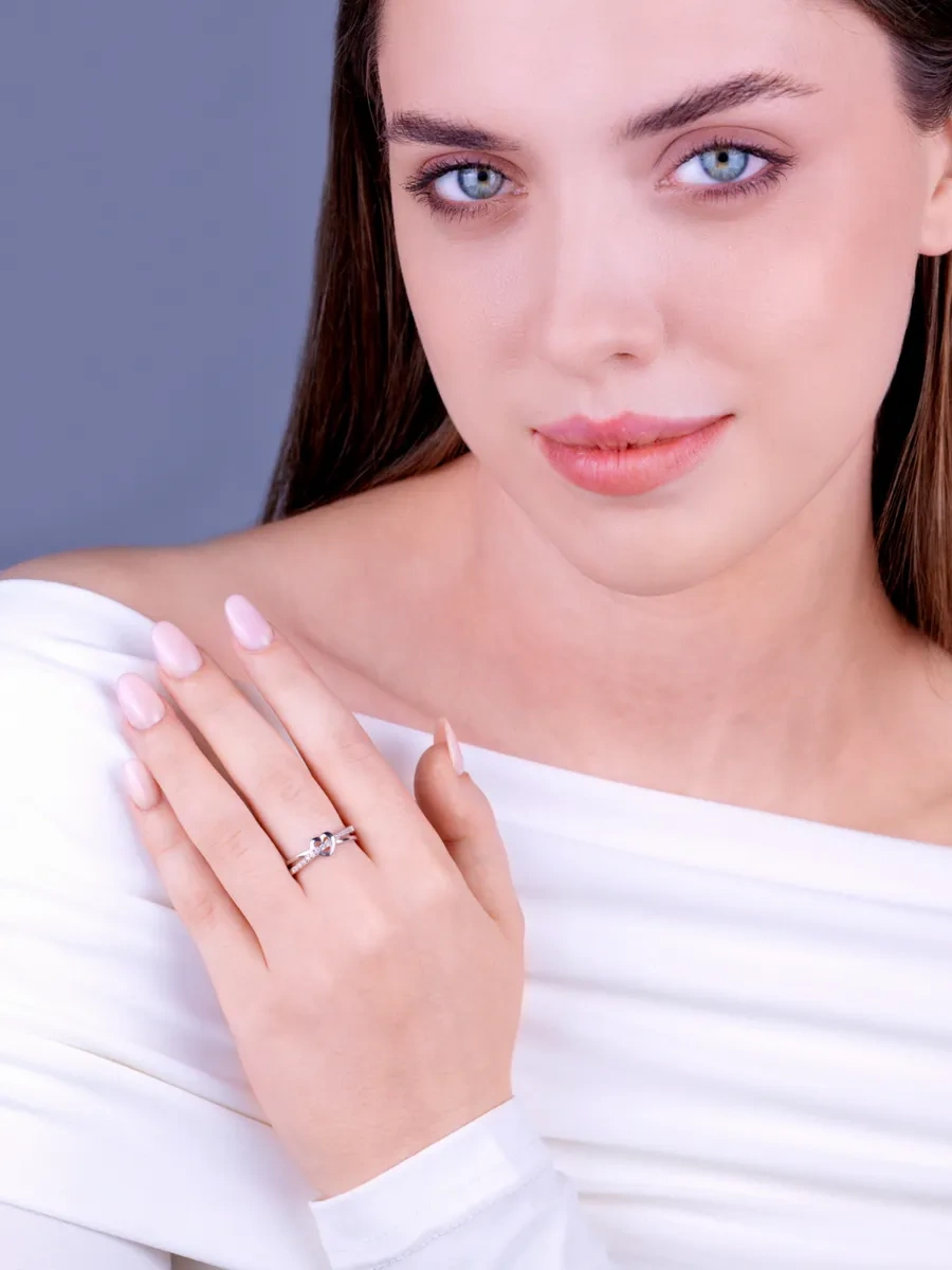 Kadın Sıralı Taş Detay Tasarım Model Taşlı Gümüş Yüzük