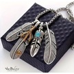 Totem Wings Otantik 4 Lü Tüy Detaylı 925 Ayar Gümüş Zincir Unisex Kolye Gümüş