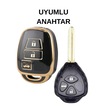 Toyota Rav4 Corolla Camry Yaris Prado Avensis Land Cruiser 3 Buton Nano Anahtar Kılıfı Siyah-gold