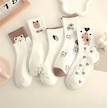 Trampler Kadın 5 Çift Ayı Balon Kalp Desenli Mevsimlik Şık Çorap Kahverengi