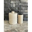 Traverten Doğal Taş Çöp Kovası Ve Wc Fırçalığı 2'li Mat Siyah Fırça Beyaz