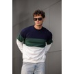 Trc 3244 Üç İplik Pamuklu Parçalı Bisiklet Yaka Erkek Sweatshirt 001