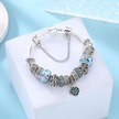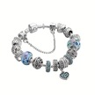 Trend Kalp Aşk Temalı Mavi Charm Bileklik, Ahşap Kutu İçerisin