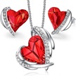 Trend Renkli Taşlı, Zirkon Taş İşlemeli Kalp Takı Seti Kolye Küpe , Yeni Yıl, Kırmızı