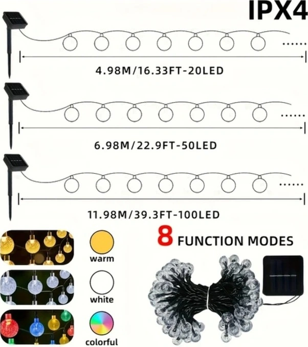 Trendooze 100 Adet Solar Kristal Küre Led Mekan Aydınlatma 39.3ft Dış