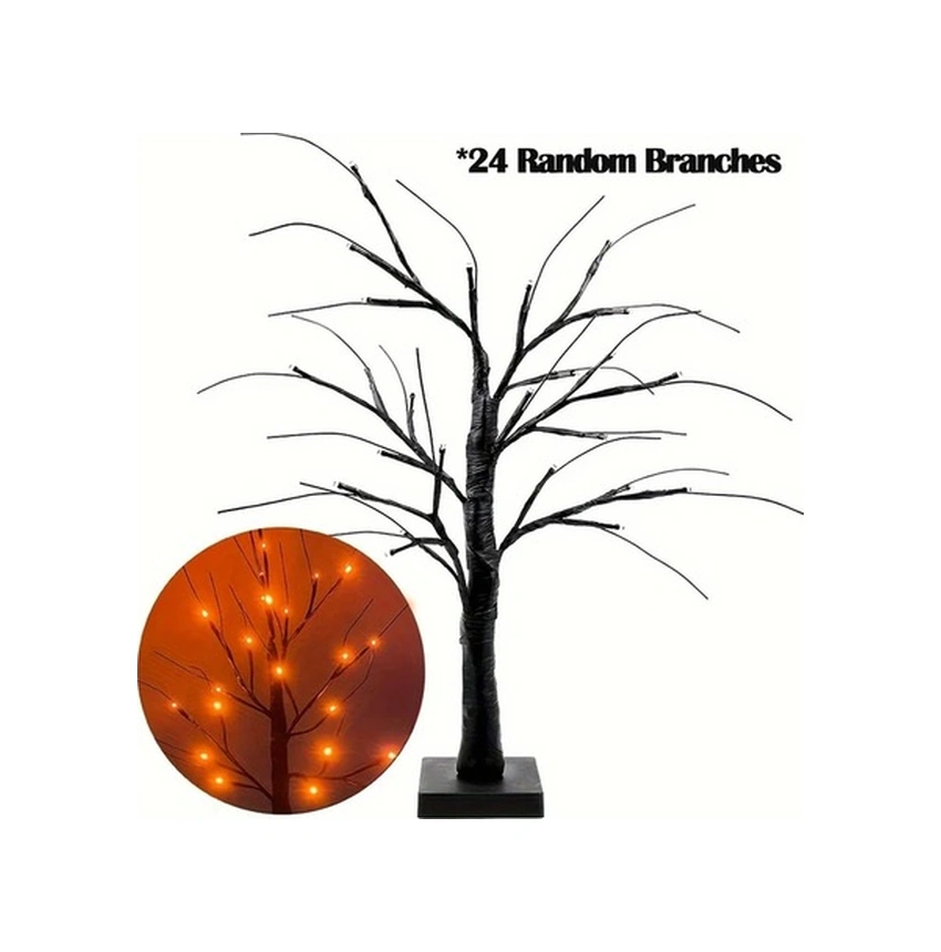 Trendooze 24 Inç Turuncu Kırmızı Huş Ağacı Mini Lamba, Pil İle Çalışır, Masaüstü Sıcak Beyaz Noel Dekoru Kırmızı - Turuncu
