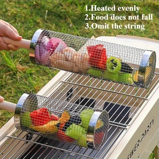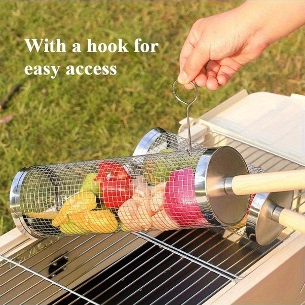 Trendooze 304 Paslanmaz Çelik Döner Izgara Sepeti, 360 Ayarlanabilir Yükseklik