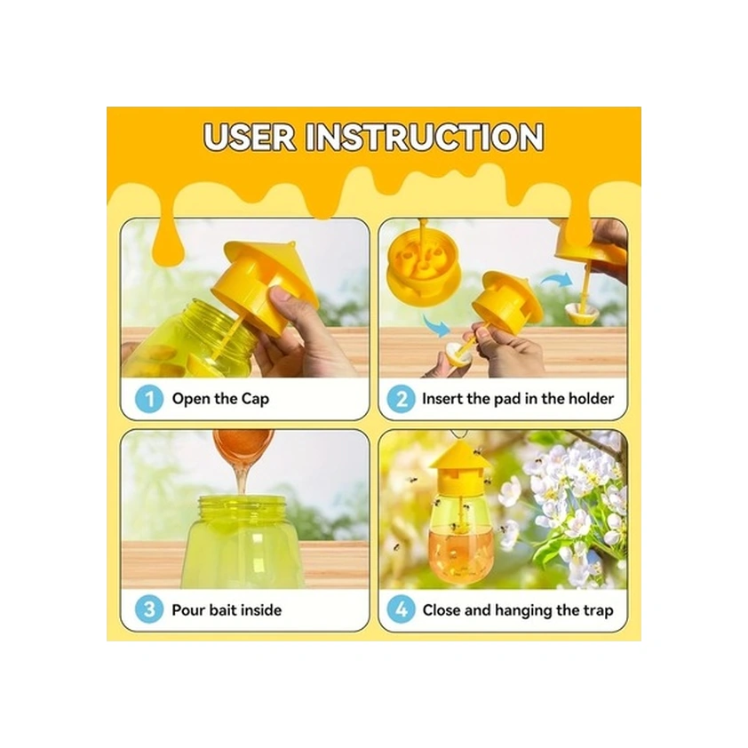 Trendooze Güneşli022 2 Adet Büyük Sarı Yaban Arısı Tuzak, Yeniden Kullanılabilir Bahçe Tuzak
