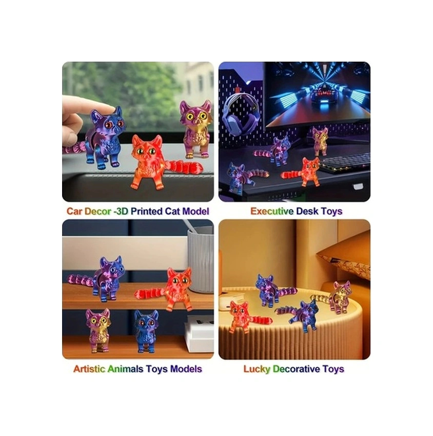 Trendooze Güneşli022 3d Baskılı Kedi Heykeli, Lazer Yeşil Masa Dekoru