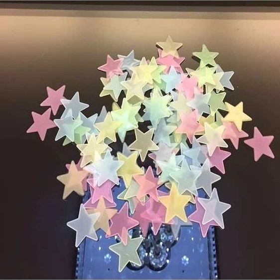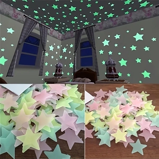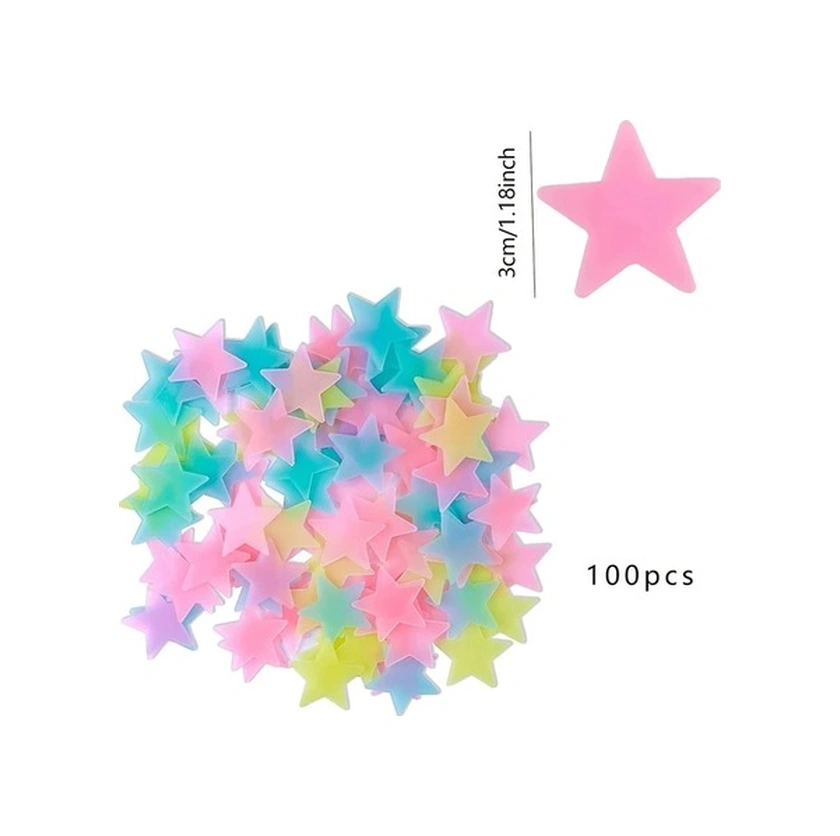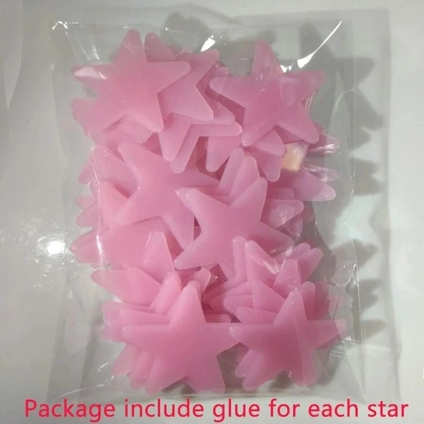 Trendooze Parlayan Yıldız 100 Adet Karanlıkta Parlayan Kendinden Yapışkanlı Pembe Çıkartmalar Pembe