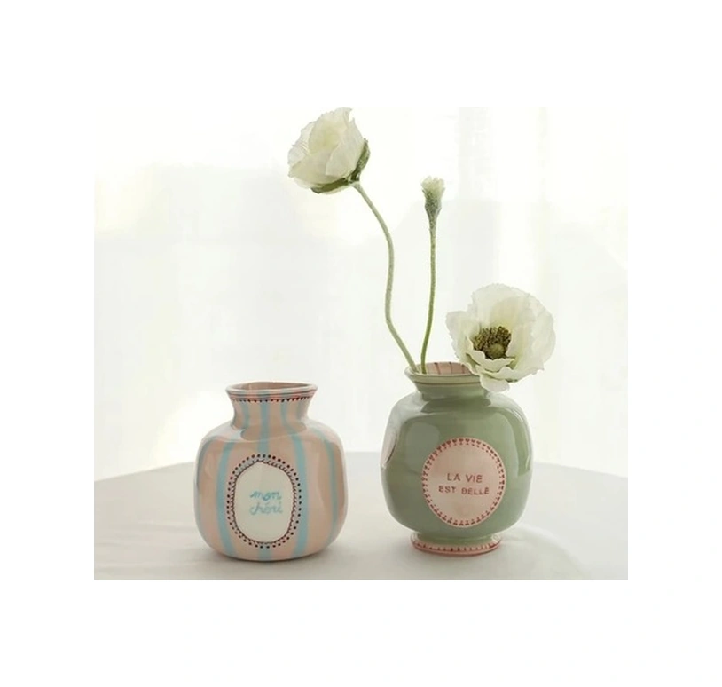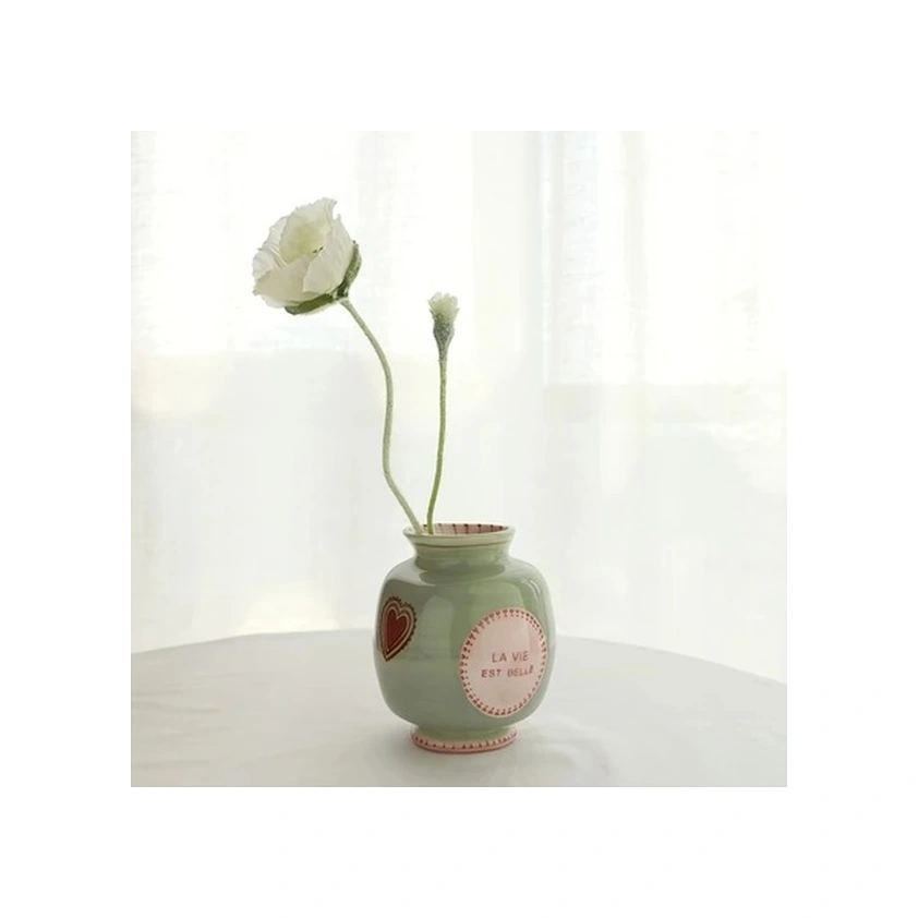 Trendooze Pembe Kalp Çiçek Seramik Vazo - El Yapımı Ev Dekorasyon